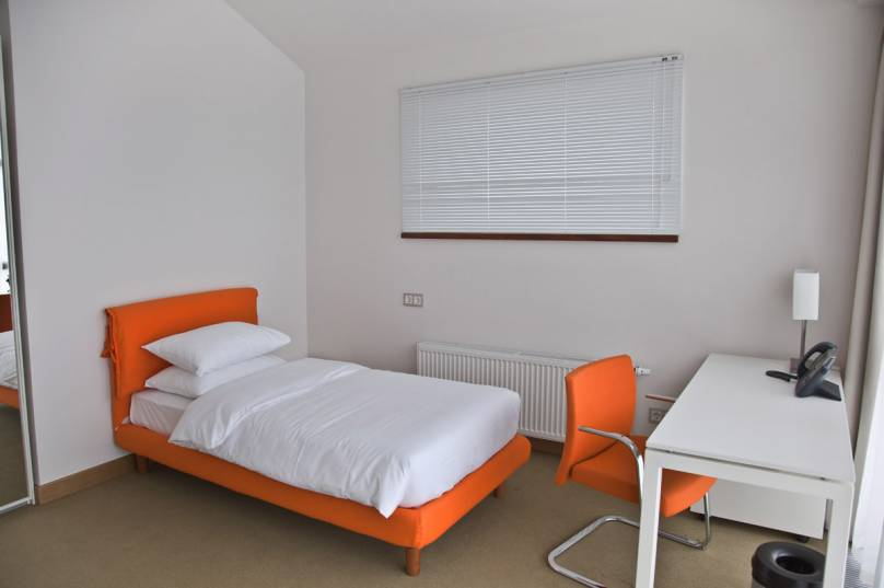The project is completed in accordance with the customer’s requirements. Design is austere and minimalistic. Interior illustrates natural simplicity: laconic forms, straight lines and clarity of composition. Use of natural materials brings to the interior a positive, warm atmosphere and harmony. A walnut-wood is used in the interior design, which ensures necessary warmth and coziness to the living premises. The walnut-wood is a reliable, durable, environment friendly, “live” material, which also creates an elegant and austere atmosphere.