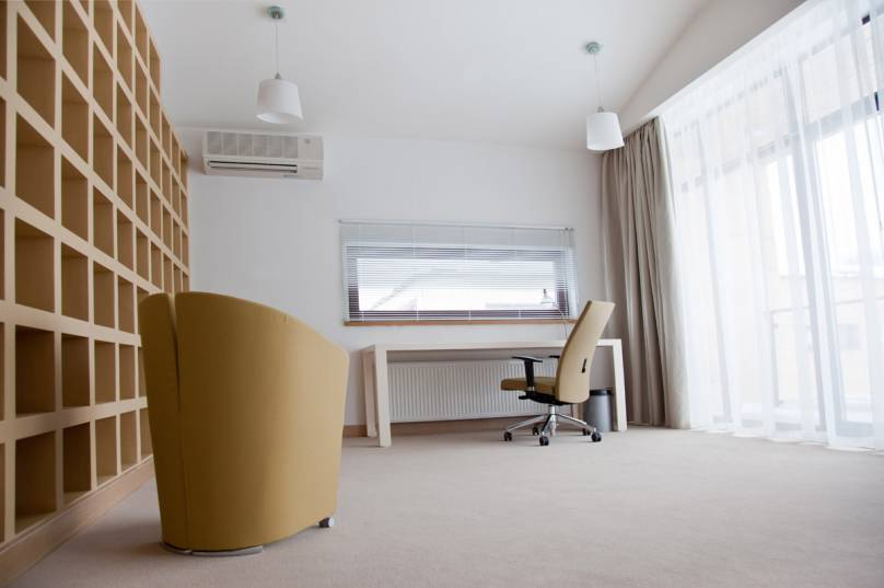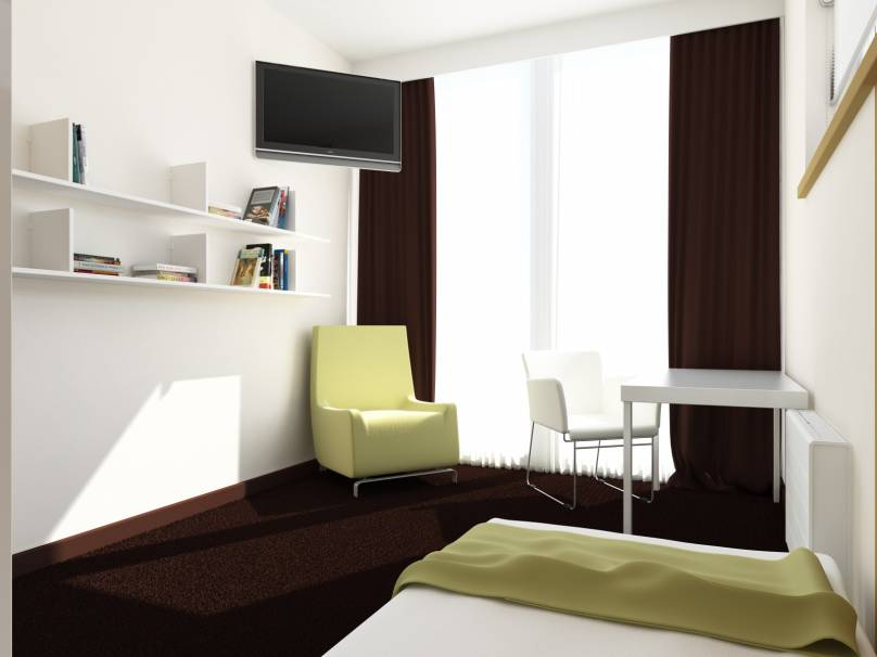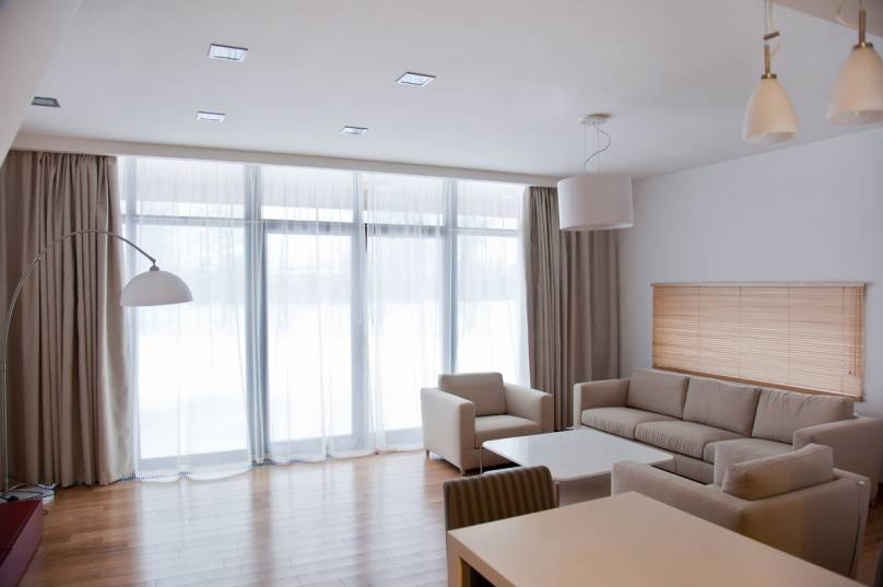 The project is implemented in accordance with the technical specifications of the customer. Design is austere, minimalistic and economical. Interior illustrates natural simplicity: laconic forms, straight lines and clarity of composition. Use of natural materials brings to the interior a positive, warm atmosphere and harmony. An oak wood is used in the interior design, which ensures necessary warmth and coziness to the living premises.